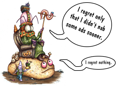 If you gaze slightly to your left, assuming you are viewing this site on a desktop computer, you will probably see some fascinating banner ads. One (or more) such ads could be yours for only $50 for an ENTIRE YEAR!!!!!