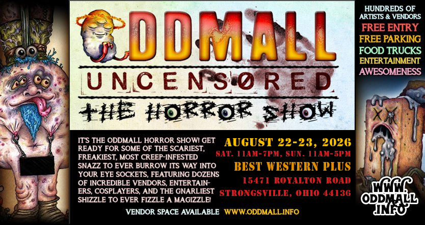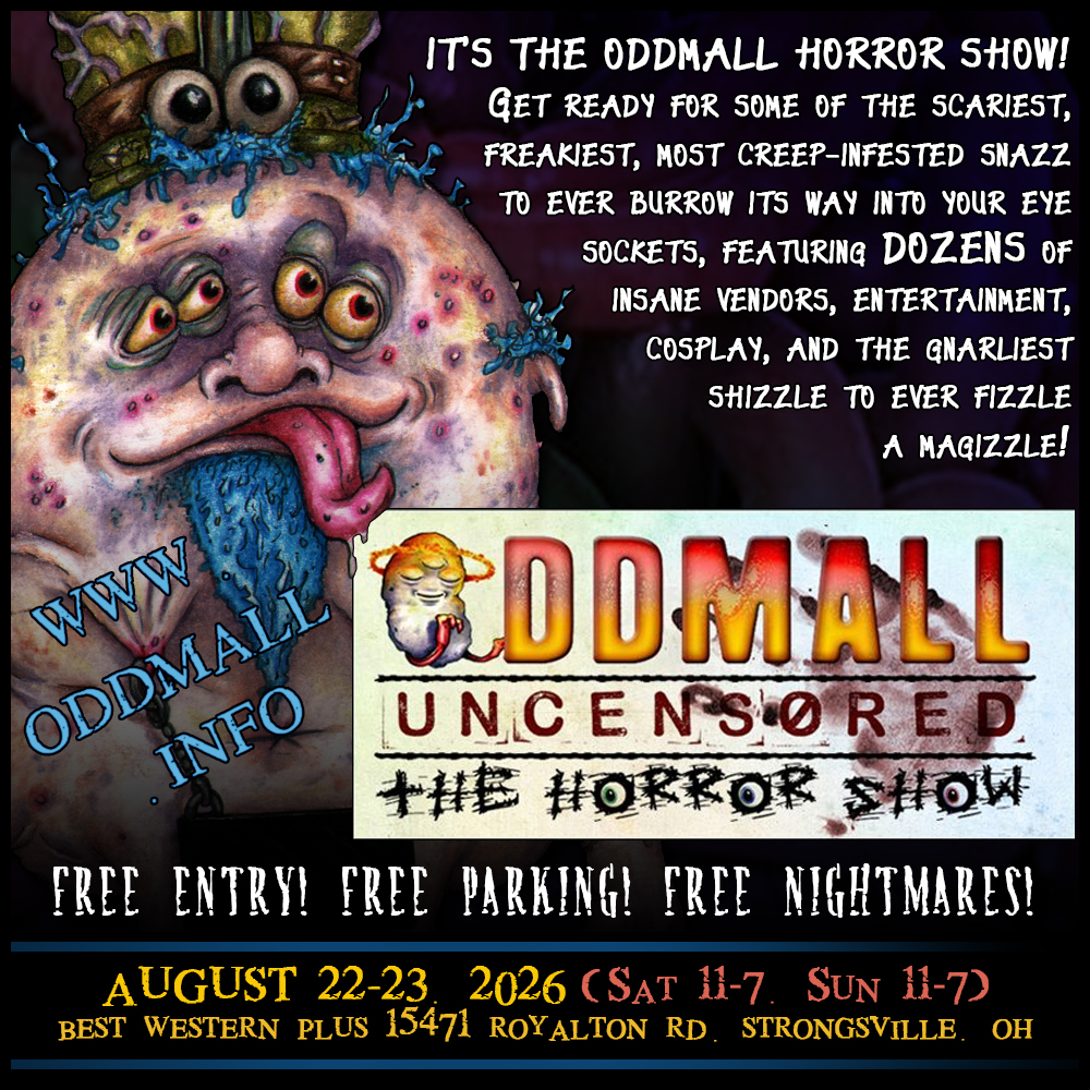 • WHAT: IT’S THE ODDMALL HORROR SHOW! Get ready for some of the scariest, freakiest, most creep-infested snazz to ever burrow its way into your eye sockets, featuring DOZENS of incredible vendors, live entertainment, cosplay, and the gnarliest shizzle to ever fizzle a magizzle! This is a celebration of free expression and, as the name implies (or even explicitly states), censorship is not a thing here. You might see some stuff… As such, parental discretion is advised. Children are welcome, but parents should be aware they might see some things they can’t unsee.